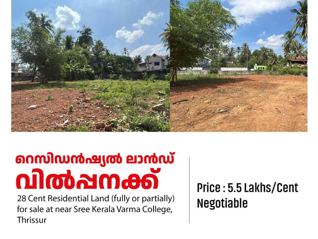 *തൃശ്ശൂർ ജില്ലയിൽ Sree Kerala Varma College Thrikkumaram Kudam അമ്പലത്തിന് സമിപം 28 സെന്റ് സ്ഥലം വില്പനയ്ക്ക്*